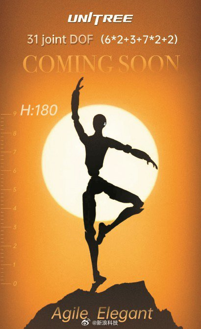 ● 日前,宇树科技公开了新品预热海报,这款即将发布的人形机器人以“芭蕾舞者”形象示人——宽肩窄腰,体形纤长,正踮着脚尖似乎要翩翩起舞。