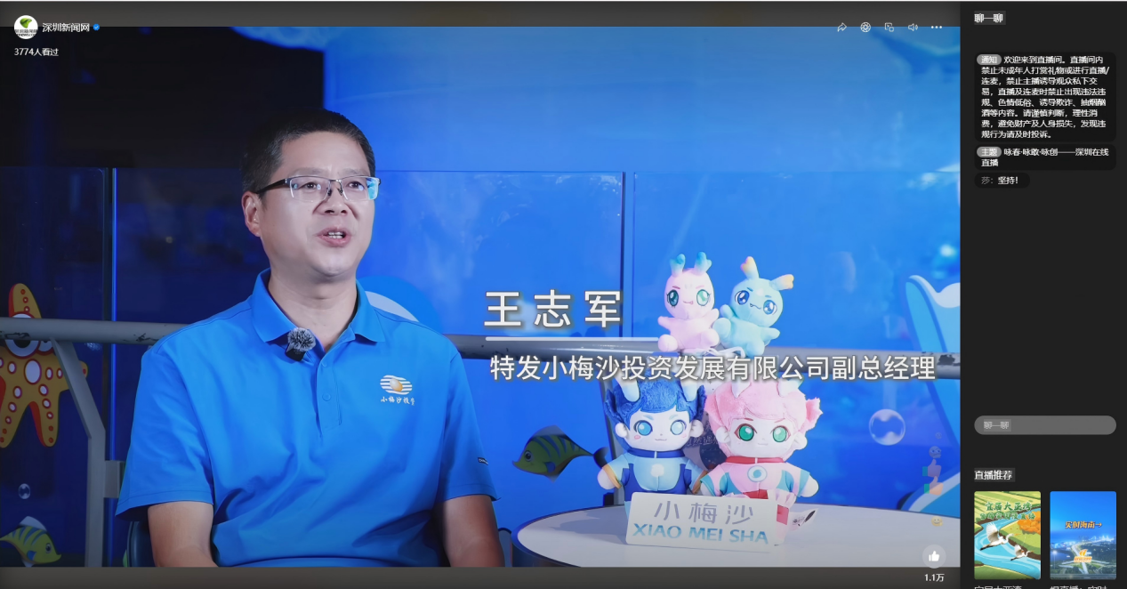 深圳新闻网2025年8月27日讯(记者 田志强)2025年正值深圳经济特区建立45周年。8月26日,深圳新闻网“咏春・咏敢・咏创”深圳经济特区建立45周年12小时特别直播,来到了深圳小梅沙海洋世界。特发小梅沙投资发展有限公司副总经理王志军受邀直播连线,分享小梅沙与深圳共生历程,在展现小梅沙与特区共成长历程的同时,展望深圳海洋经济发展蓝图。