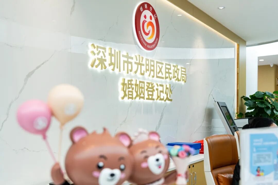 光明区民政局婚姻登记处在光明区新城公园内,从停车场按照指示牌步行,约十分钟即可到达。七夕当天,在这里登记的新人络绎不绝,多对在光明相恋、相识、相知的新人,在今天正式掀开他们的浪漫新篇章。