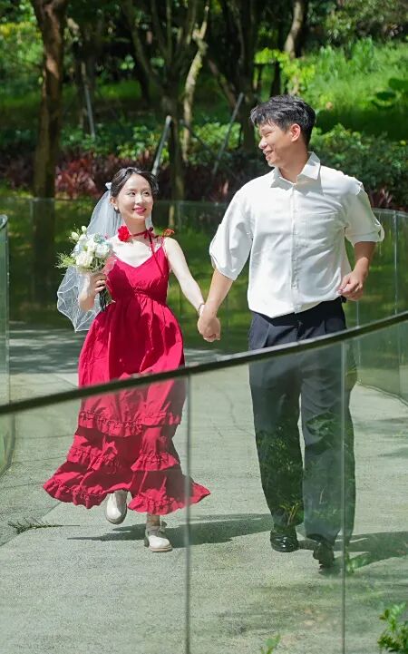 彭先生、孙女士表示,光明婚姻登记处在公园里面,环境好氛围很浪漫,领证后也可以拍出美美的照片,平常也会去虹桥公园、蓝鲸世界等拍照、约会。