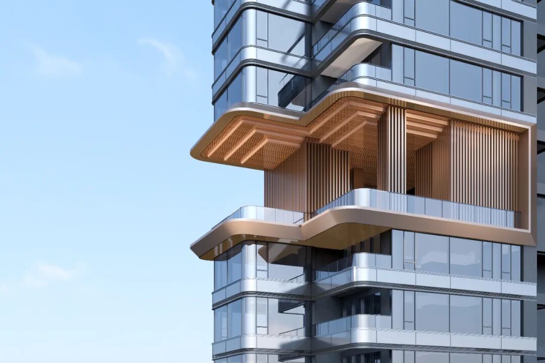在立面设计上,项目特邀华汇设计操刀,采用公建化立面设计,以360度玻璃幕为“画布”,搭配质感铝板,勾勒出极具现代感的建筑轮廓。此举不仅赋予居所卓越的隔音、隔热性能,还使建筑外观线条流畅、质感十足,成为一道亮丽的风景线。该立面设计从全球近3.8万件作品中脱颖而出,斩获2024缪斯设计奖最高荣誉金奖。