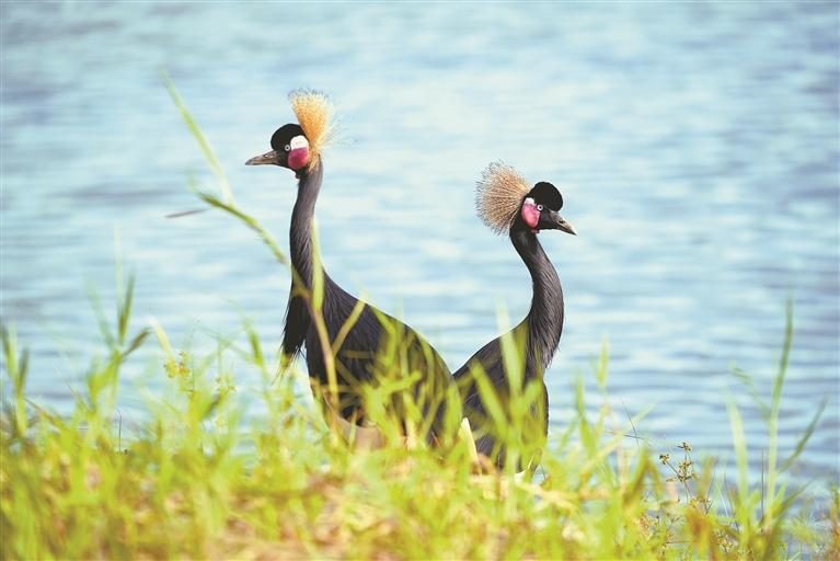 ● 宝安:近日,两只黑冠鹤造访九围湿地公园。