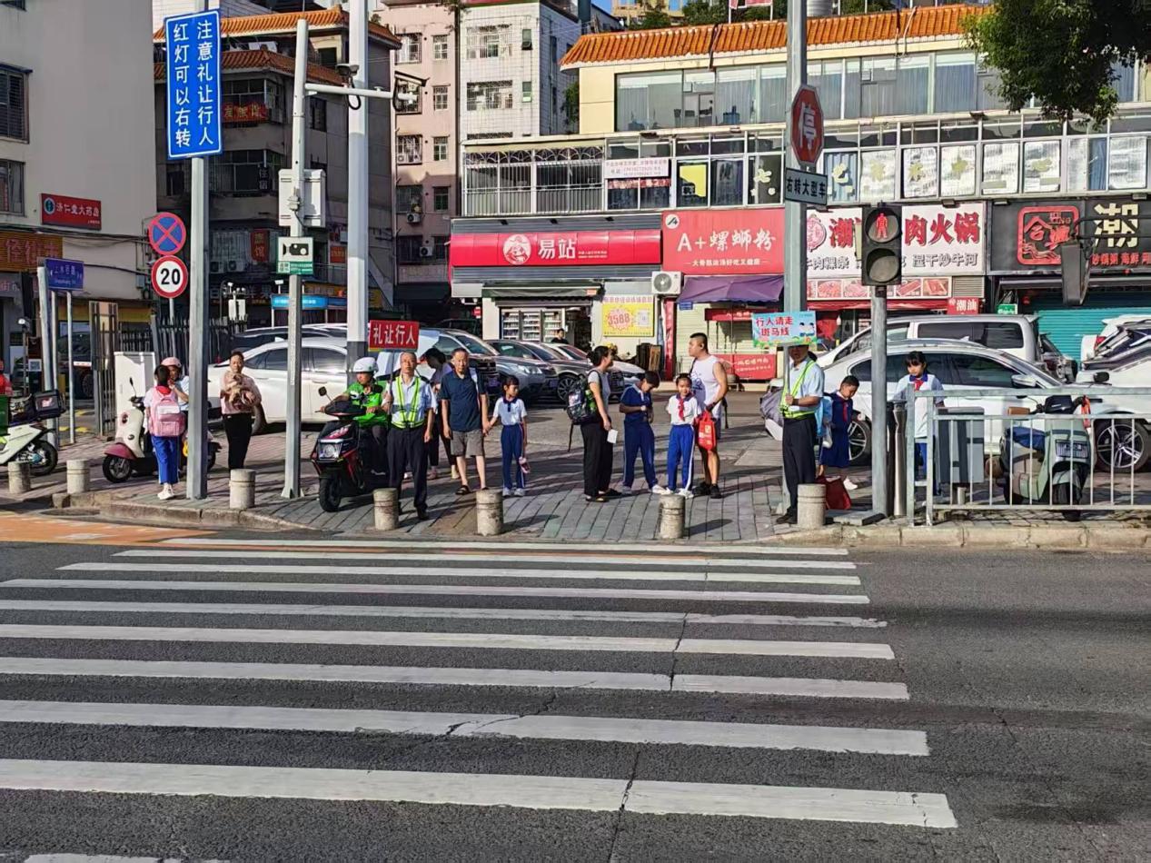 活动现场,志愿者们提前到岗、分工协作,在校园周边织密安全防护网。在公交站台,他们主动维护乘车秩序,引导学生有序排队、安全上下车;在交叉路口,他们紧盯学生通行动态,专人专岗护送过马路,同时高举提示牌提醒过往司机“减速慢行、礼让行人”,全力疏导行人和车辆通行。面对家长咨询的校园周边公交路线、换乘站点等问题,志愿者们耐心细致解答、提供指引,以贴心服务有效缓解开学早高峰交通压力,让家长送学更安心。