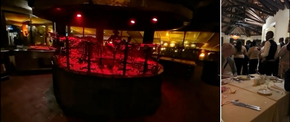 当一把长刀切下新鲜的肉片送到盘中,我们尝遍了鸡肉、牛肉、羊肉、鱼肉、鳄鱼肉、鸵鸟肉……每一种都带着不同的风味与口感。席间,我们还见证了另一桌客人的生日庆祝:餐厅的工作人员敲着鼓,唱起欢快的歌,伴着舞蹈将热烈的气氛推向高潮。我们也跟着鼓点鼓掌欢呼,那一刻,整个餐厅似乎是一座欢乐的舞台,把来自不同国家的客人都卷入其中。