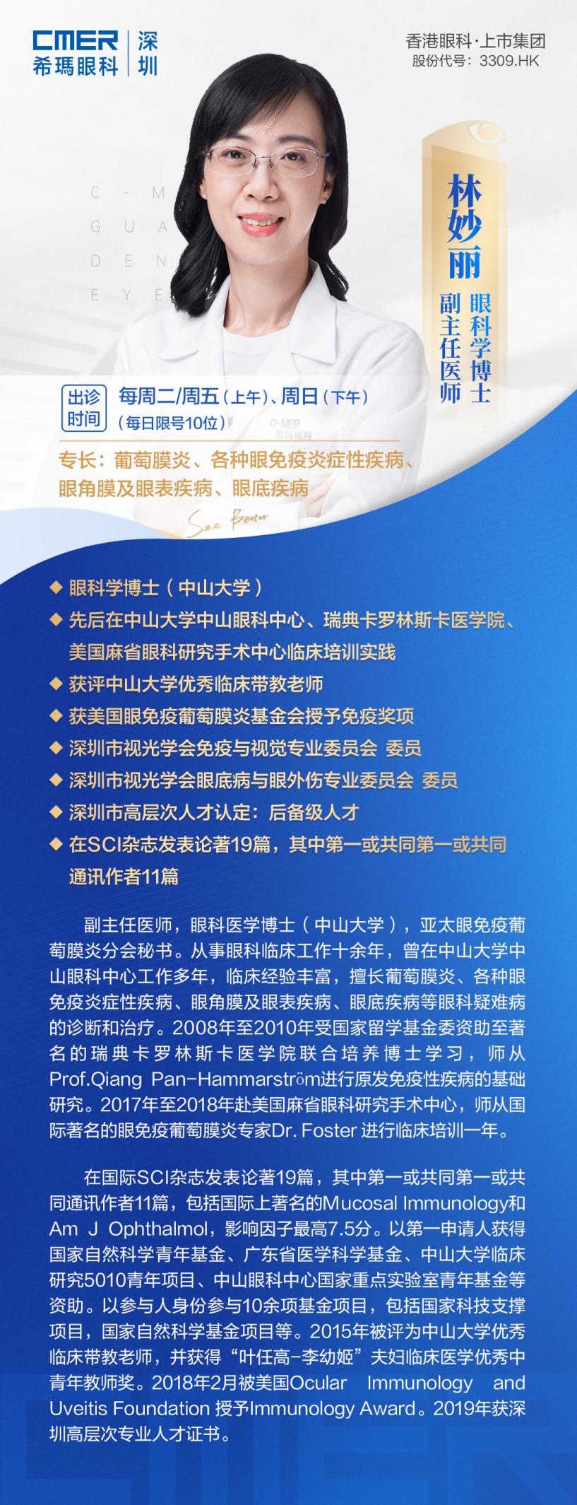 深圳新闻网2025年9月6日讯(记者 何亚南)没症状,会伪装,多数无法治愈,对任何年龄段无差别攻击……葡萄膜因富含毛细血管网,成为全身易发炎部位之一,而由其引发的葡萄膜炎堪称眼病中的“硬骨头”。想啃下它,对于医生和患者,都像是在跑一场马拉松。深圳希玛眼科眼免疫葡萄膜炎专科副主任医师林妙丽,对此深有体会。