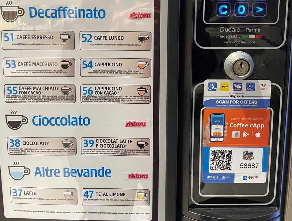 中国游客去欧洲,想要喝一杯无人值守咖啡,也能用支付宝。