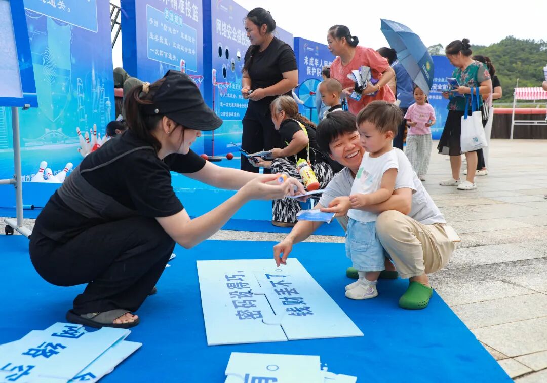 活动现场设置了“未成年人网络保护积木塔”“反电诈精准投篮”“个人信息保护拼拼乐”“网络安全保龄球”“网络安全投投乐”“网络安全答题大转盘”等互动游戏摊位,将网络安全知识点融入互动环节,寓教于乐,吸引了大量居民前来参与,现场欢笑声不断,完成游戏的居民还可免费获得精美的“深物·汕品”文创产品。