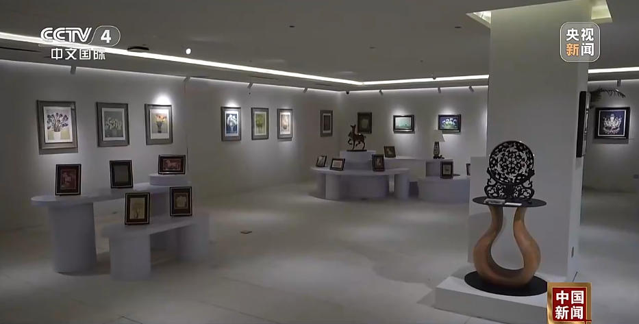 常沙娜艺术中心主任 曾薇瑄:包含景泰蓝、瓷器、丝巾、卡牌、雕塑等等,(我们)做了一系列创新的转化,我们所有的创作都是在敦煌图案的基础上去做提炼跟转化的。