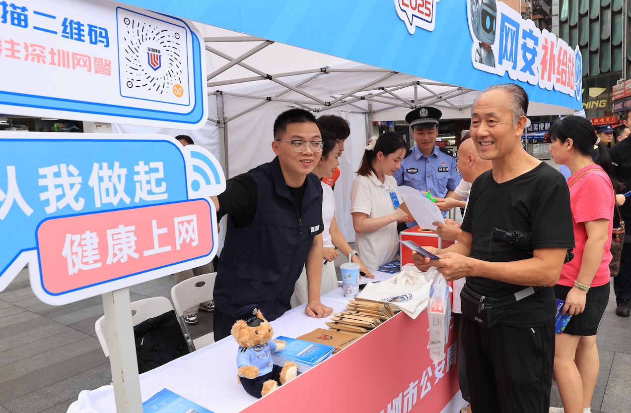 深圳新闻网2025年9月20日讯(记者 林恒鑫)“个人信息防泄漏,谣言蜚语莫轻听;适度上网防沉迷,谨防诈骗常提醒;与人为善拒网暴,守好底线不欺凌……”9月18日下午,在深圳市罗湖区东门步行街白马广场,深圳市公安局举办2025年网络安全宣传周“法治日”暨常态化警营开放日网络安全专场活动,吸引了众多市民驻足参与。舞台上,穿着统一制服的深圳少年警营队员们齐声诵读《新时代青少年网民文明公约》,高亢有力的诵读赢来台下一阵阵掌声,现场气氛热烈。