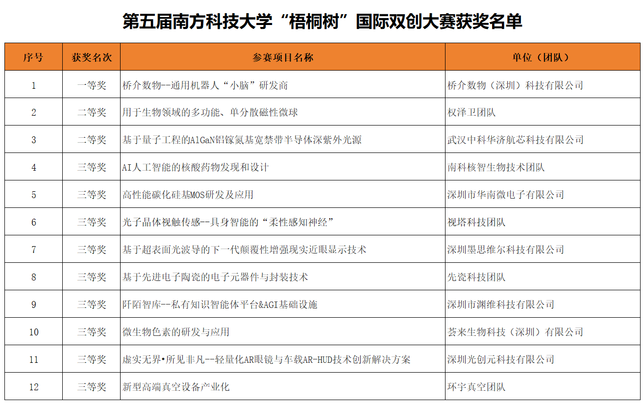 据大赛主办方南方科技大学科技园区负责人介绍,赛后将继续为参赛项目落地深圳提供资源对接、投融资支持、引才引智等服务,擦亮南科大“梧桐树”这块金字招牌。南方科技大学自主管理的“南科梧桐”天使投资基金将重点对获奖和参赛企业进行跟踪投资,为参赛队伍对接创投资本,实现金融和产业赋能。目前南科梧桐天使投资基金投资的10个项目大多数为往届大赛参赛项目,基金管理人南科大分享基金管理公司也入选投资家网2025最佳早期投资机构TOP40榜单。