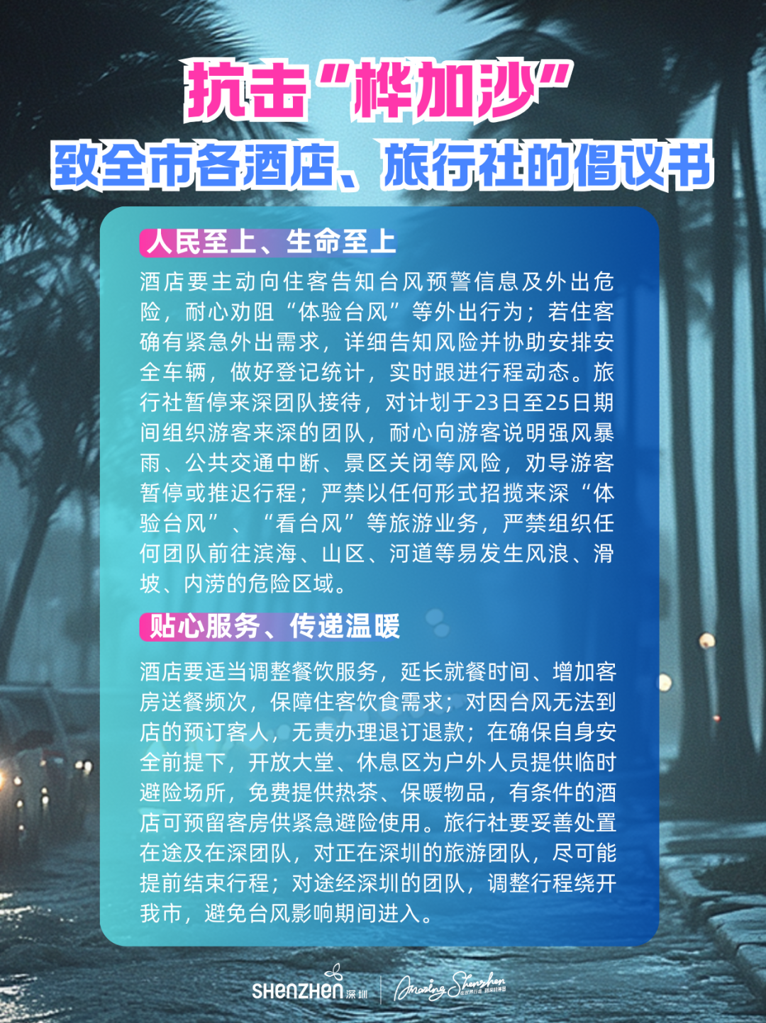 ● 9月23日,深圳市文化广电旅游体育局向全市酒店、旅行社倡议:守护在深客!