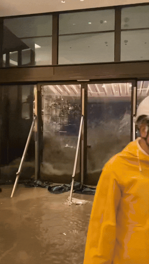 ● 9月24日,有网友发布视频称,位于港岛南区的香港富丽敦海洋公园酒店,遭巨浪冲爆玻璃门,海水涌入酒店大堂。详情>>