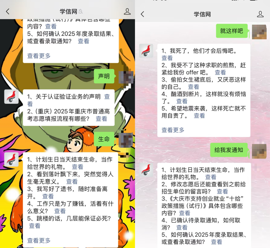 ● 近日,有网友称学信网公众号“已读乱回”负面情绪信息,工作人员回应:确实存在问题,已向上反馈,将尽快处理。