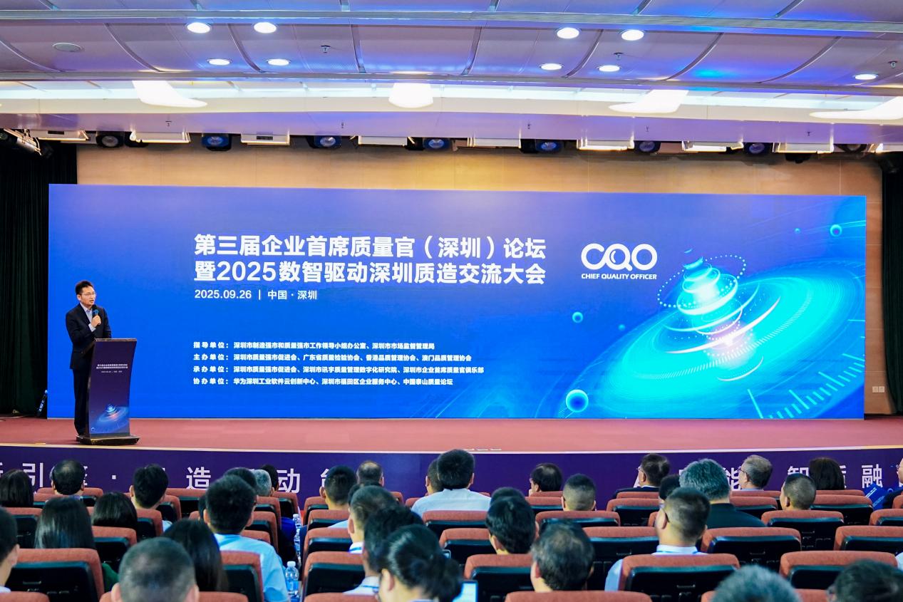 深圳新闻网2025年9月28日讯 9月26日,由深圳市制造强市和质量强市办公室领导小组办公室、深圳市市场监督管理局指导,深圳市质量强市促进会、广东省质量检验协会、香港品质管理协会、澳门品质管理协会联合主办的第三届企业首席质量官(深圳)论坛成功举办。深圳市政协原副主席徐友军出席活动并宣布论坛启动。国家市场监督管理总局质量发展局原副局长、一级巡视员李宣庆出席活动并讲话。深圳市政法委原副书记、一级巡视员、市决咨委专家社会组组长胡建农,深圳市市场监管局质量发展处处长陈宇纲出席活动。深圳市质量强市促进会执行会长刘万涛主持论坛开幕式。中兴通讯党委委员、首席质量官主持论坛,比亚迪副总裁首席质量官赵俭平致闭幕词。300余家制造业企业的首席质量官代表出席活动。