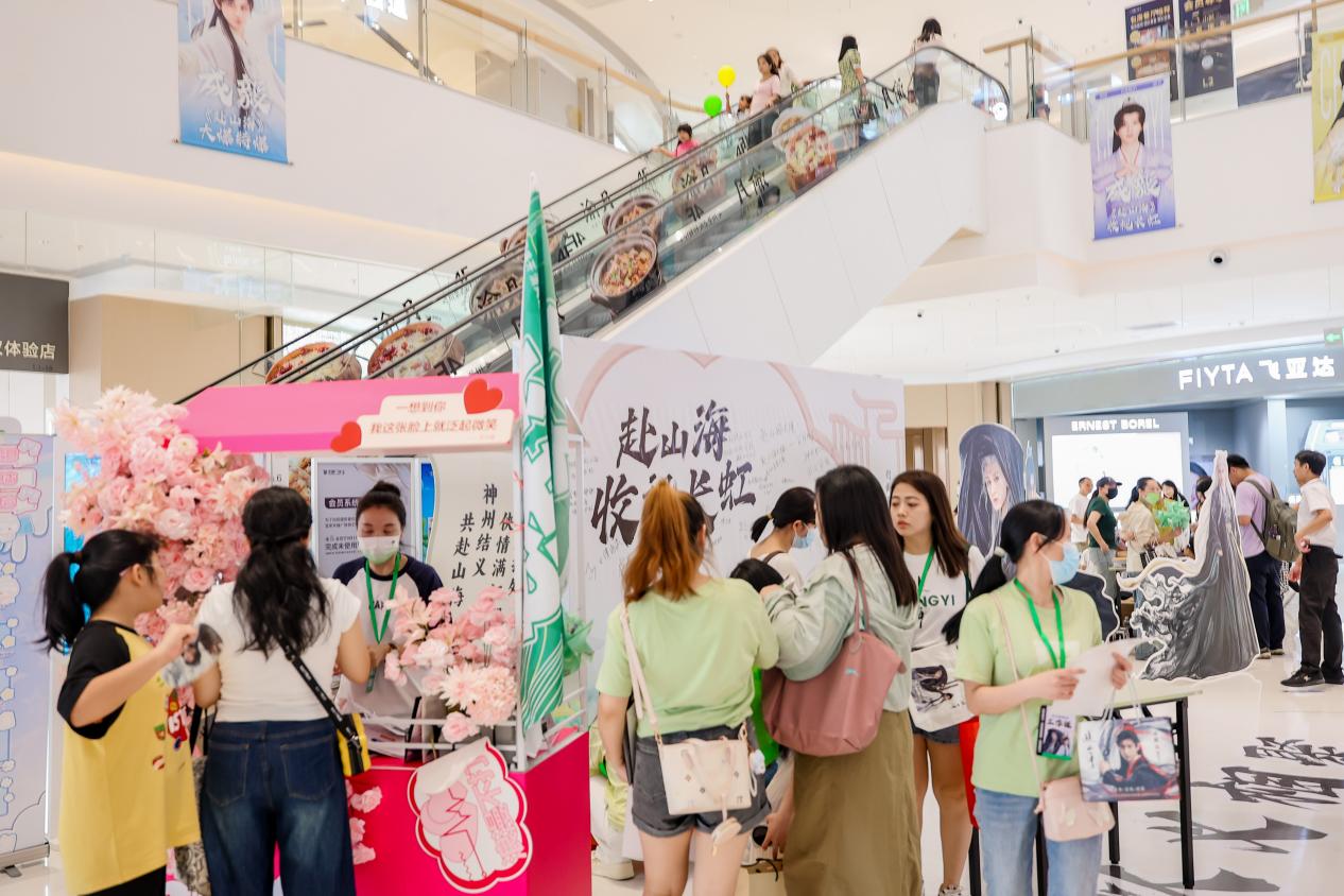 项目还具备敏锐“网感”,在商场大屏发起“玩梗”互动,如520推出“拒绝恋爱脑”文案,成为城市社交热点;结合热门影视综艺,如借成毅主演的《赴山海》设置应援大屏和打卡点,吸引粉丝引发流量爆发,实现社交媒体裂变传播,触达更广泛年轻客群。