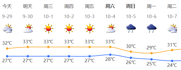 30日-10月4日多云到晴天,局地偶有短时(雷)阵雨,午间较热;
