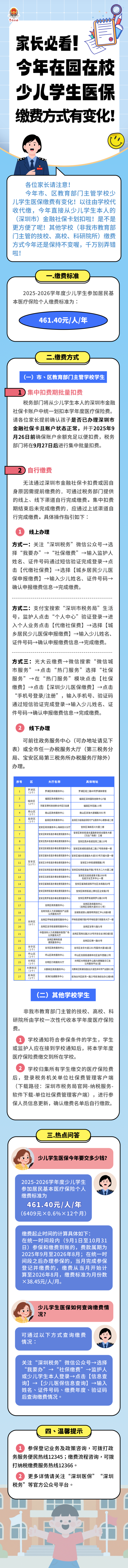 ● 深圳市2025-2026学年度少儿学生基本医疗保险集中参保缴费工作已全面启动,缴费方式迎来新变化。