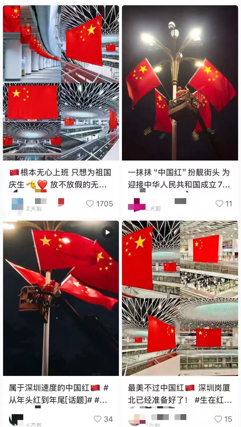 ● 近乎一夜之间,深圳各区约200条主干道飘起“中国红”。