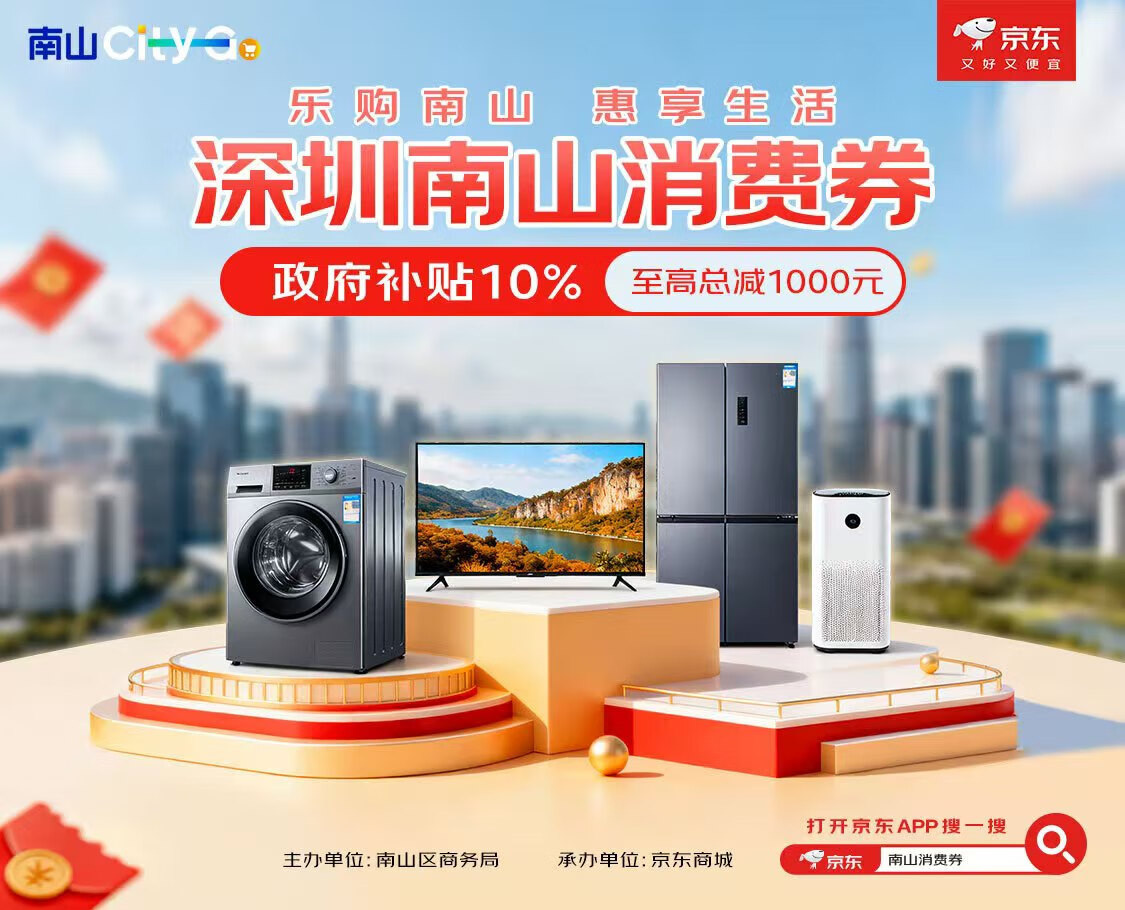 深圳新闻网2025年9月30日讯(记者 田志强)今年以来,深圳市多措并举提振消费,并重点支持家电消费焕新升级。近日,京东率先承接深圳市南山区家电消费券发放工作,以无门槛立减的创新形式,为消费者带来最高1000元的购物补贴。这场政企联动的活动落地,不仅让市民享受到“即买即省”的实惠,更通过完善的服务为其打造优质的购新体验,进而持续激活当地消费潜力。