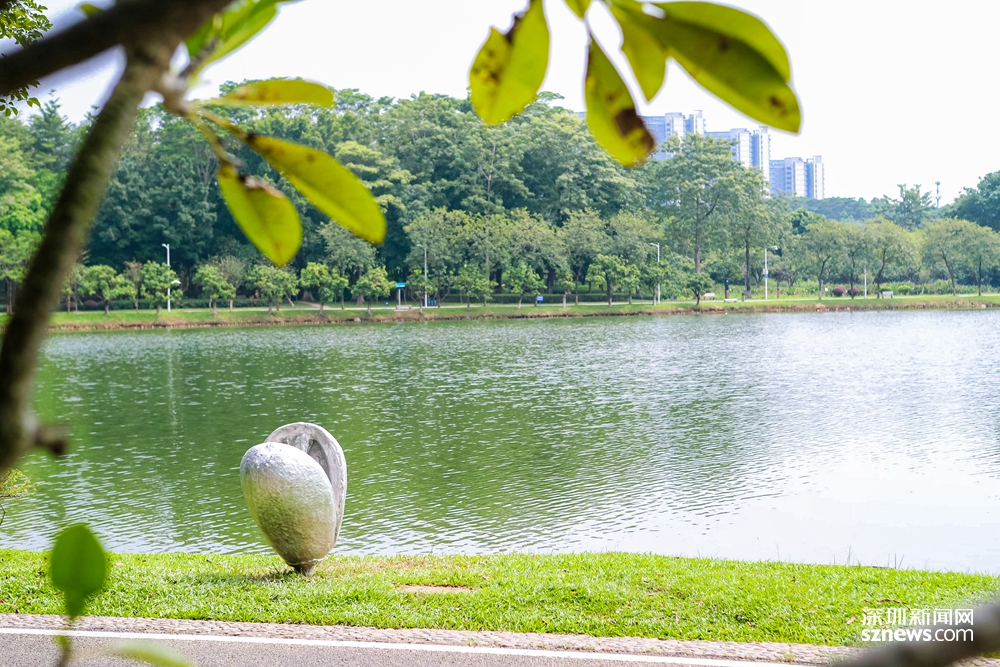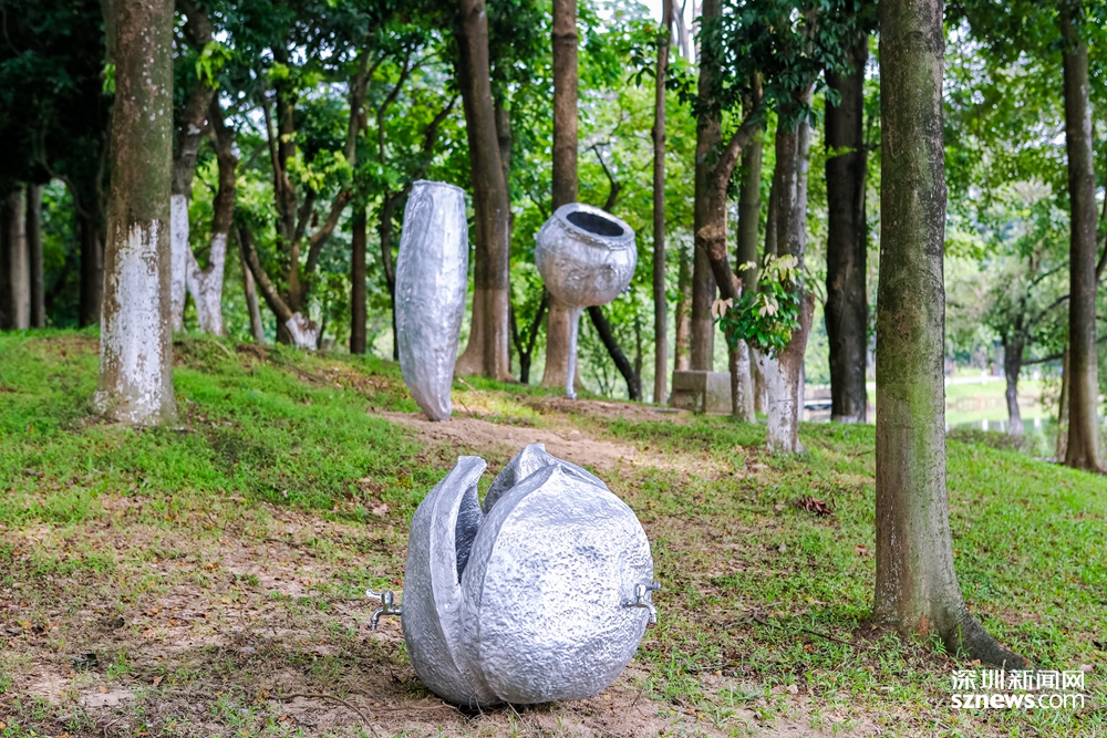 湖畔的装置作品,仿佛刚刚成熟跌落地面蹦开果壳的果实。