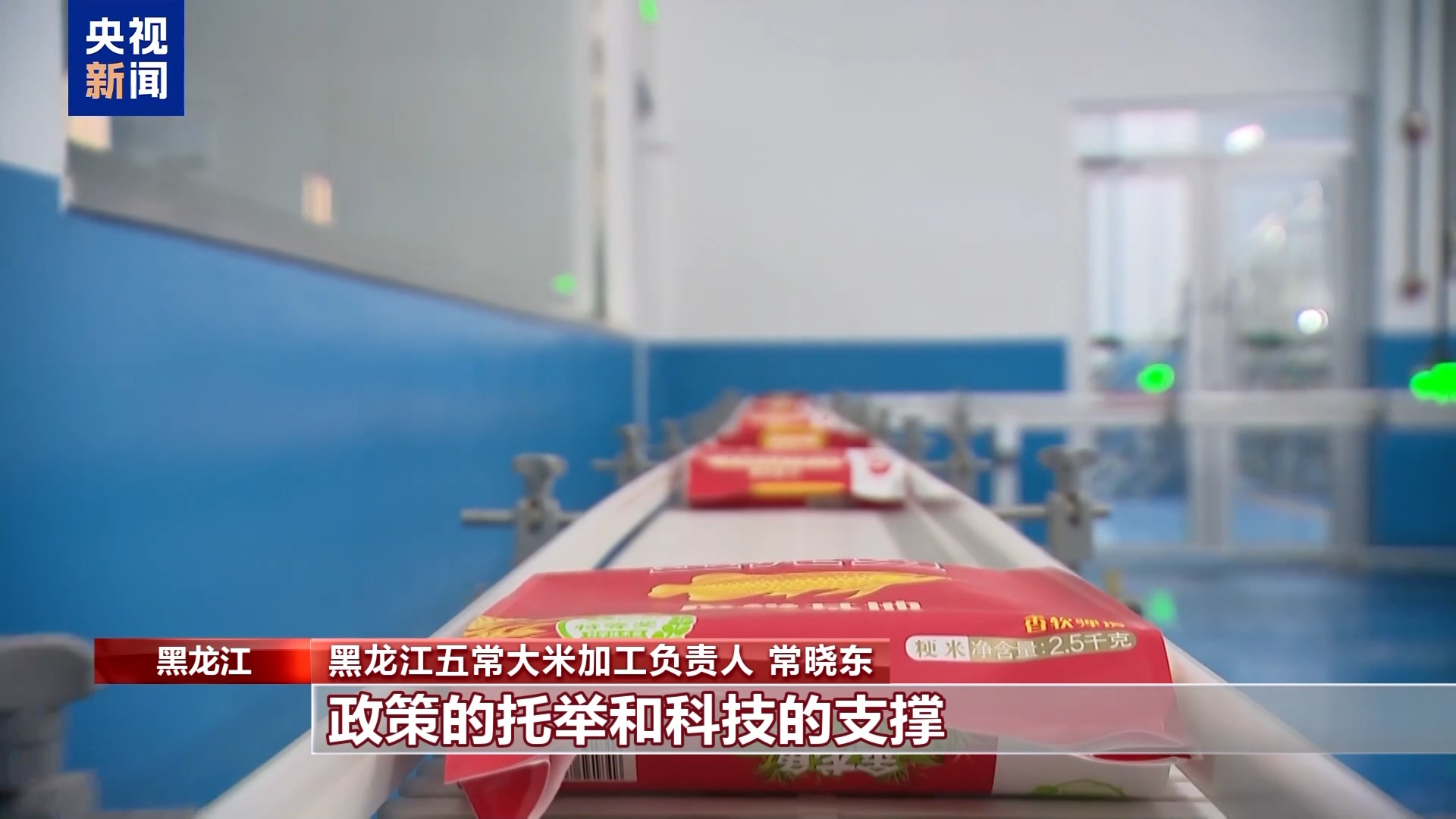 黑龙江五常大米加工负责人 常晓东:我们的生产车间是非常忙碌,大米生产线连续24小时不停机,每天加工生产大米400吨。很骄傲,丰收的底气得益于政策的托举和科技的支撑。