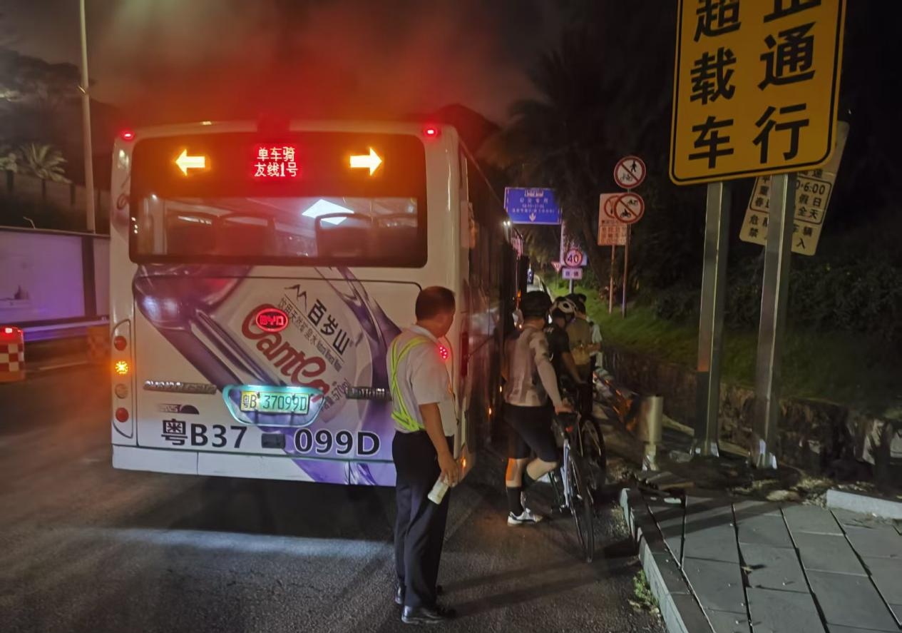 事故发生后,深圳巴士集团第四分公司邻海车队迅速响应,车队管理员董永久、张玉平第一时间赶赴现场,主动投入救援与协调工作。抵达后,二人立即与盐田交警对接,积极配合开展应急处置。他们沉着冷静,充分发挥公交从业人员的专业素养,协助维护现场秩序,安抚受惊乘客,并高效参与交通疏导和人员转移工作。
