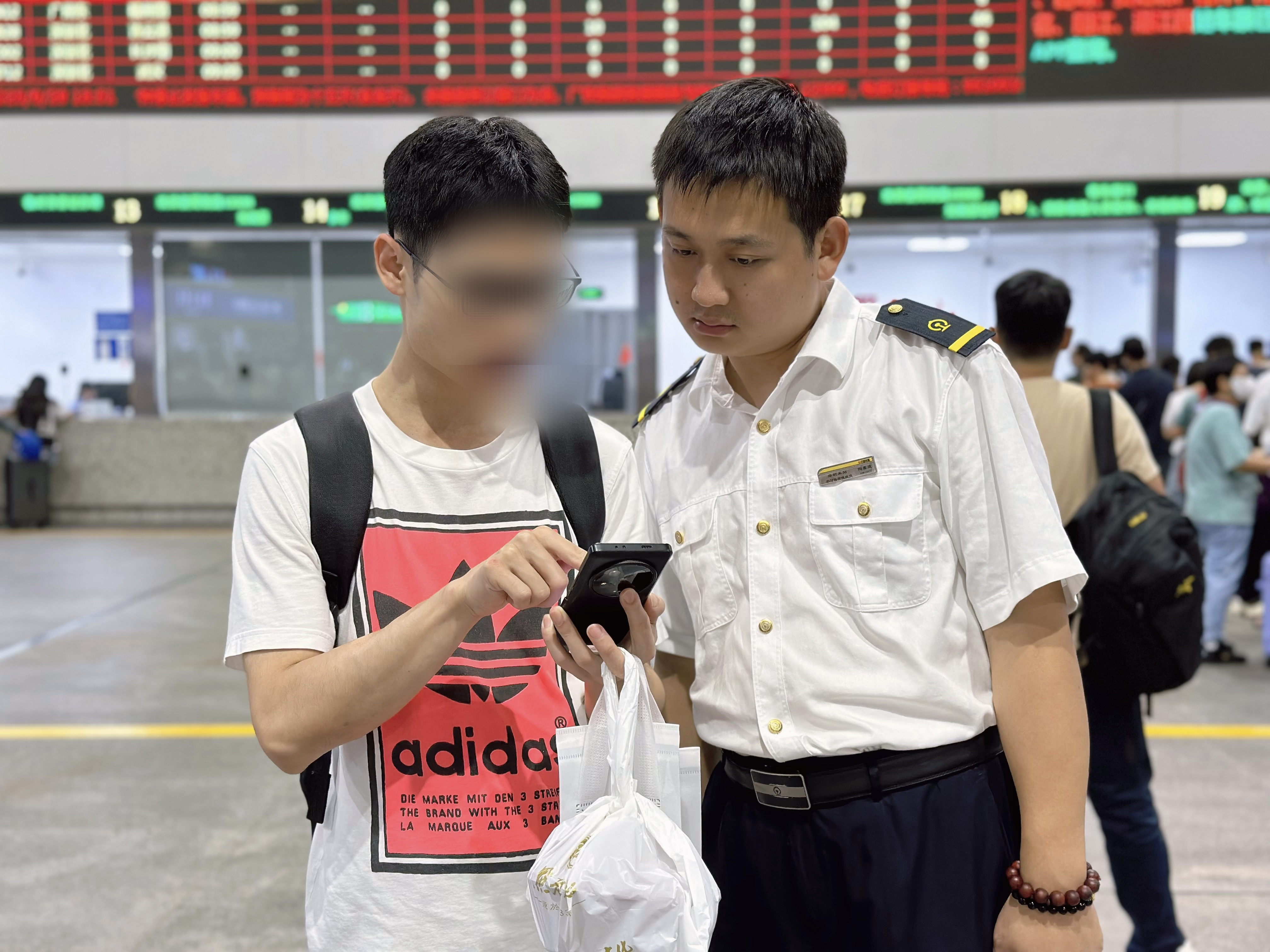 担心老人记不住,陶鑫建又提醒道,“过了安检之后,左手边是A面检票口,从A2往前走就能看到A9了。”老人听完连连点头,“太谢谢你了!”陶鑫建目送老人走向进站口,又转身投入到工作中。