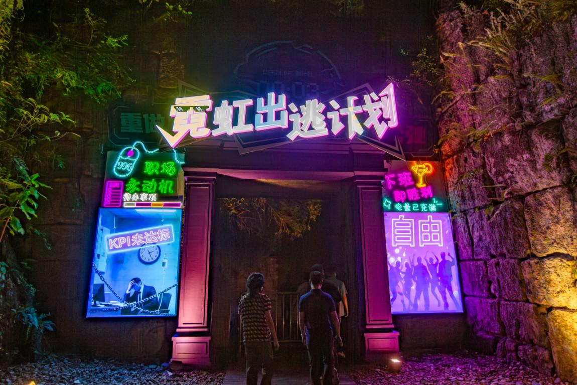 精心打造的五大霓幻空间,突破传统观览模式,带来深度互动与奇幻体验。“桃源绯梦”以中式美学重构秘境,让游客亲身探寻桃花源深处的故事与秘密,感受东方美学的独特魅力;影视级场景打造的“霓梦旅店”,让泰式风情的探索之旅充满惊喜;“霓虹出逃计划”通过昼夜双线设计,实现 N 重情绪体验的解压释放;“法老归来”融合声光电特效,在金字塔场景中打造高密度视听触互动;富士山影院的 5D《星际探险》则以超感技术带来穿越星际的惊险与刺激。