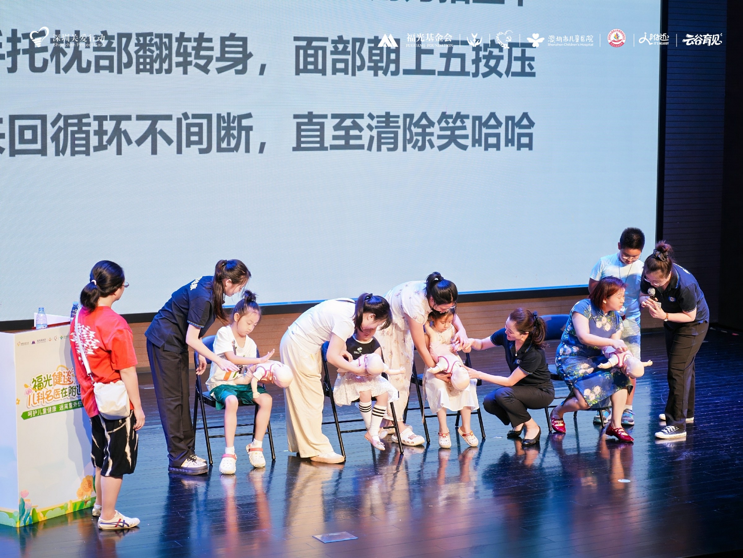 麻晓鹏院长在分享中强调:“预防远胜于治疗。将专业的儿童健康知识从医院前置到社区和家庭,是医院从‘以治病为中心’转向‘以健康为中心’的关键实践。”他结合大量真实案例,生动讲解了各类常见意外的急救与预防。李文婷医生、曾烈梅护士长则通过现场演示,手把手教学海姆立克急救法等关键技能。