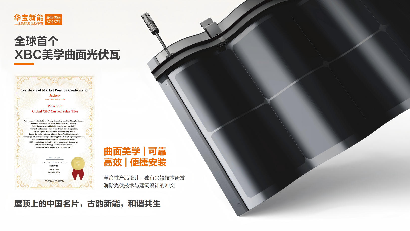 技术上,作为“全球首款XBC晶硅多曲光伏瓦”,有三大核心突破:XBC电池转换效率达25%,光电转换效率达17.1%,处户用光伏顶级水平;独创晶硅多曲封装技术,实现0.13mm超薄电池片常压弯曲量产,让晶硅技术进入“三维时代”;模块化卡扣安装系统无需钻孔,施工效率提升30%以上,实现“即装即发”。产品已通过中欧美全序列认证,申请专利140余项,在多个项目落地应用,成为光伏建筑一体化(BIPV)行业范本。