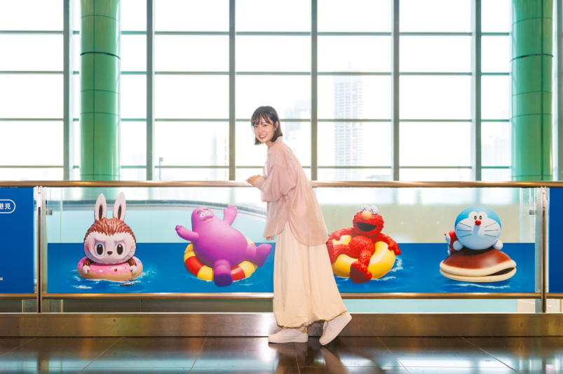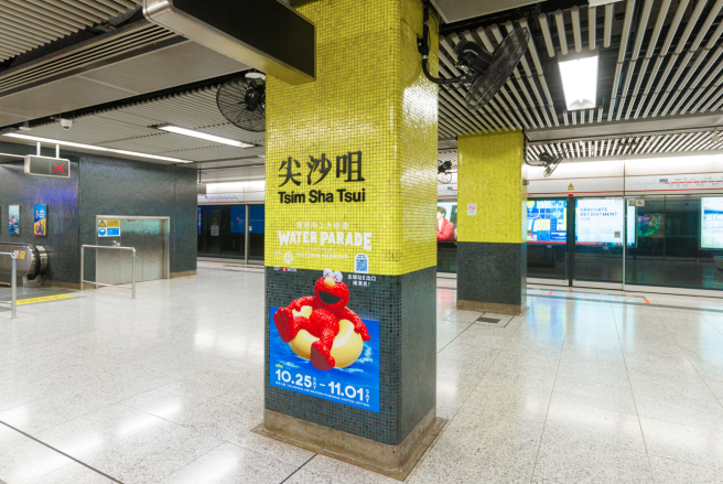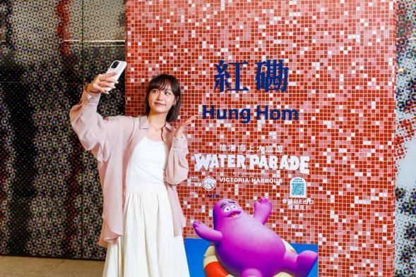 港铁站墙柱上的站名一向是市民及旅客的人气打卡热点,为配合“维港海上大巡游”,港铁特别安排四大角色以活动主题造型亮相,包括抱着豆沙包的多啦A梦、躺在水泡上的滑嘟嘟及KAWS & 芝麻街(Elmo),以及躺在冬甩水泡上的LABUBU,分别出现于中环站、铜锣湾站、尖沙咀站、旺角站及红磡站的墙柱,注入欢乐与活力,让乘客尽情打卡合照,为今次盛事留下美好回忆。而内地访港旅客所途经的落马洲站到境大堂,亦将以四位人气角色造型主题作装饰,旅客乘搭东铁线直达金钟,即可参与这次全城盛事。