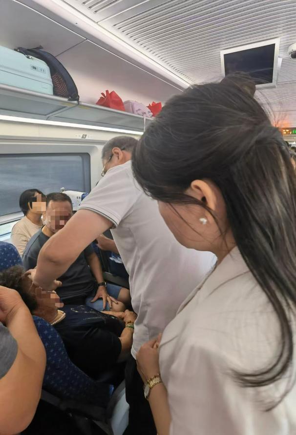 深圳新闻网2025年10月22日讯(记者 王宁)2025年10月19日下午5点,由潮州开往深圳的D683次高铁正高速平稳运行,突然,一声紧急呼叫打破了车厢的宁静:“3号车厢有乘客突发意外受伤!一位80岁以上高龄的老人不慎被保温杯砸中头面部,身体感到不适,恳请车内医务人员前往救援!”