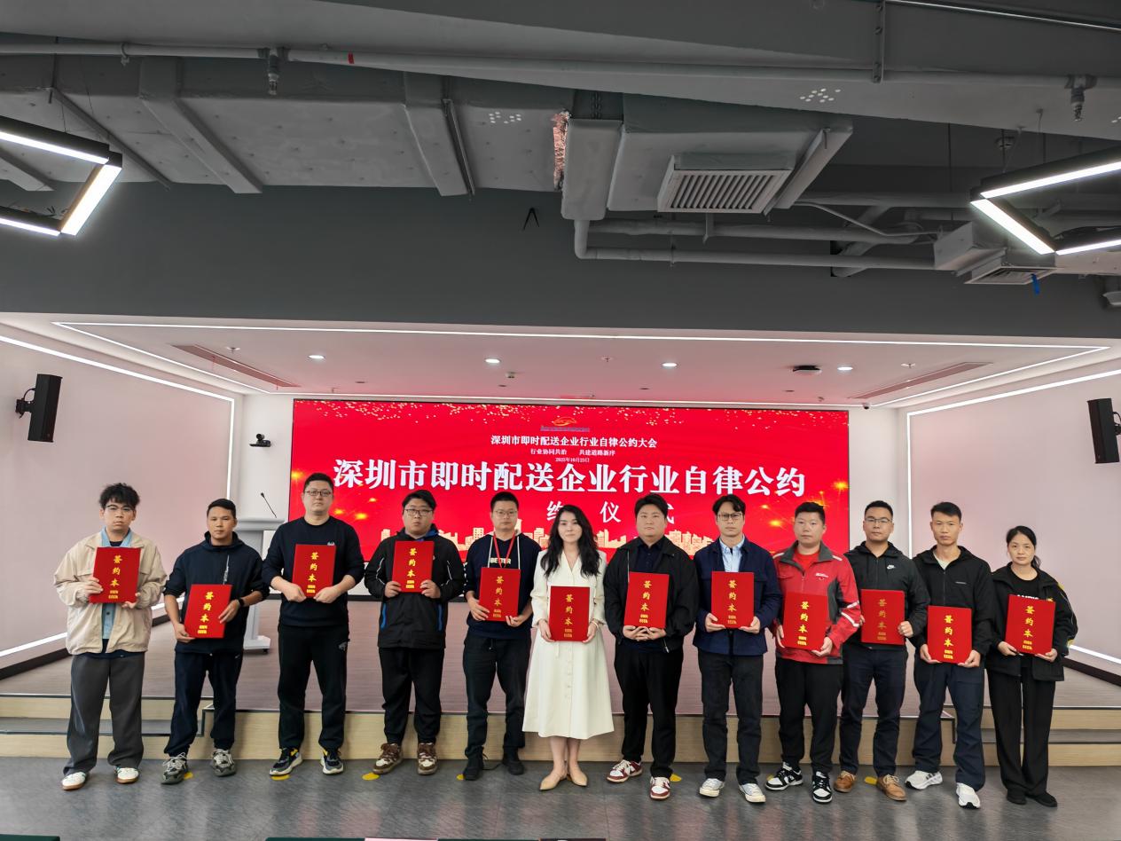 会上,市餐饮配送行业协会发出倡议,希望行业从合规发展、聚焦安全、压实责任、协同共治等方面进一步夯实企业主体责任,提高企业合规化水平和安全管理水平,为营造良好的城市交通秩序共同出力。会上同时发布并解读了《深圳市即时配送行业企业交通安全自律公约》,该公约共二十二条,约定即时配送平台企业应当守法合规经营、建立安全管理机制、保障骑手权益、自觉接受监督,从车辆合规、优化算法、强化培训、构建跨平台交通违章联合惩戒机制等方面进一步引导骑手守法依规骑行,维护安全有序的交通秩序。美团、饿了么、达达、顺丰同城等平台作表态发言,表示一致拥护《自律公约》,践行公约要求,将进一步提升合规化水平并自觉接受监督。骑手代表发言表示,感谢公约的出台,公约能更好维护了骑手的权益,表示将带头守法骑行,在维护交通秩序的基础上为市民提供更好服务。随后,在人大代表、各有关政府部门、市餐饮配送协会的见证下,各大即时配送平台全部签订《自律公约》。