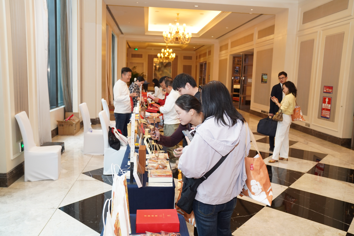 活动间隙,徐州文旅展示区人头攒动。团扇、铁壶等非遗工艺品精致典雅,汉符、曲裾衣陶舞俑等文创产品萌趣十足,肉酱米线、徐州糕点等美食更是吸引不少热爱美食的人。嘉宾们一边品尝美食,一边围着推介官追问景区线路,“这个汉符钥匙扣太有特色了,能多了解下‘彭城七里’路线吗?”一位嘉宾拿着文创产品,连番提问尽显兴趣。