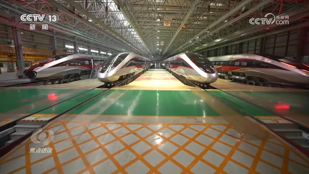 以复兴号动车组为例,大概由50多万个零件组成,涵盖了机械、冶金、材料、电力电子、化工、信息控制、计算机、精密仪器等众多技术领域,形成了千亿级的产业规模。高铁列车越跑越快,也带动整个高铁产业链不断提质升级,裂变出新的产业。