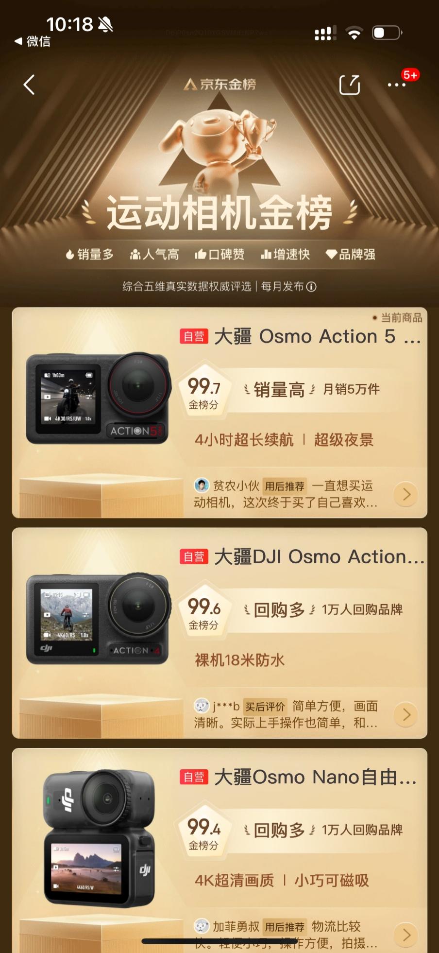 最近京东“运动相机金榜”出炉,也见证了整个运动相机赛道,已经彻底进入“大疆时间”。大疆Osmo Action 5 Pro、大疆Osmo Nano、大疆Osmo Action 4三款产品直接包揽运动相机金榜前三。
