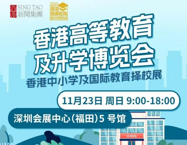 深圳新闻网2025年10月28日讯(记者 张俊达)10月28日,由星岛新闻集团主办的“香港高等教育及升学博览会2025”发布公告,该展会将于11月23日在深圳会展中心(福田)5号馆举行。本届博览会以“留学香港,梦想启航”为主题,获得香港特区政府教育局指导支持,旨在促进粤港澳大湾区教育融合发展。