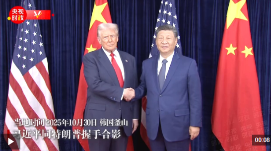 当地时间10月30日中午,中美元首会晤开始前,习近平同特朗普握手合影。