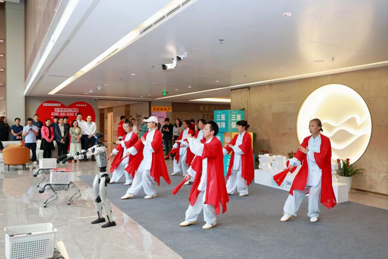 “你看它,这个动作做得多标准!”一位阿姨笑着看向和长者一起打太极的机器人。这台舞蹈机器人不仅是表演者,更成了现场最受欢迎的“舞伴”,它的动作精准流畅,与长者们互动默契,每一次转身、挥手,都能引来长者们阵阵掌声。