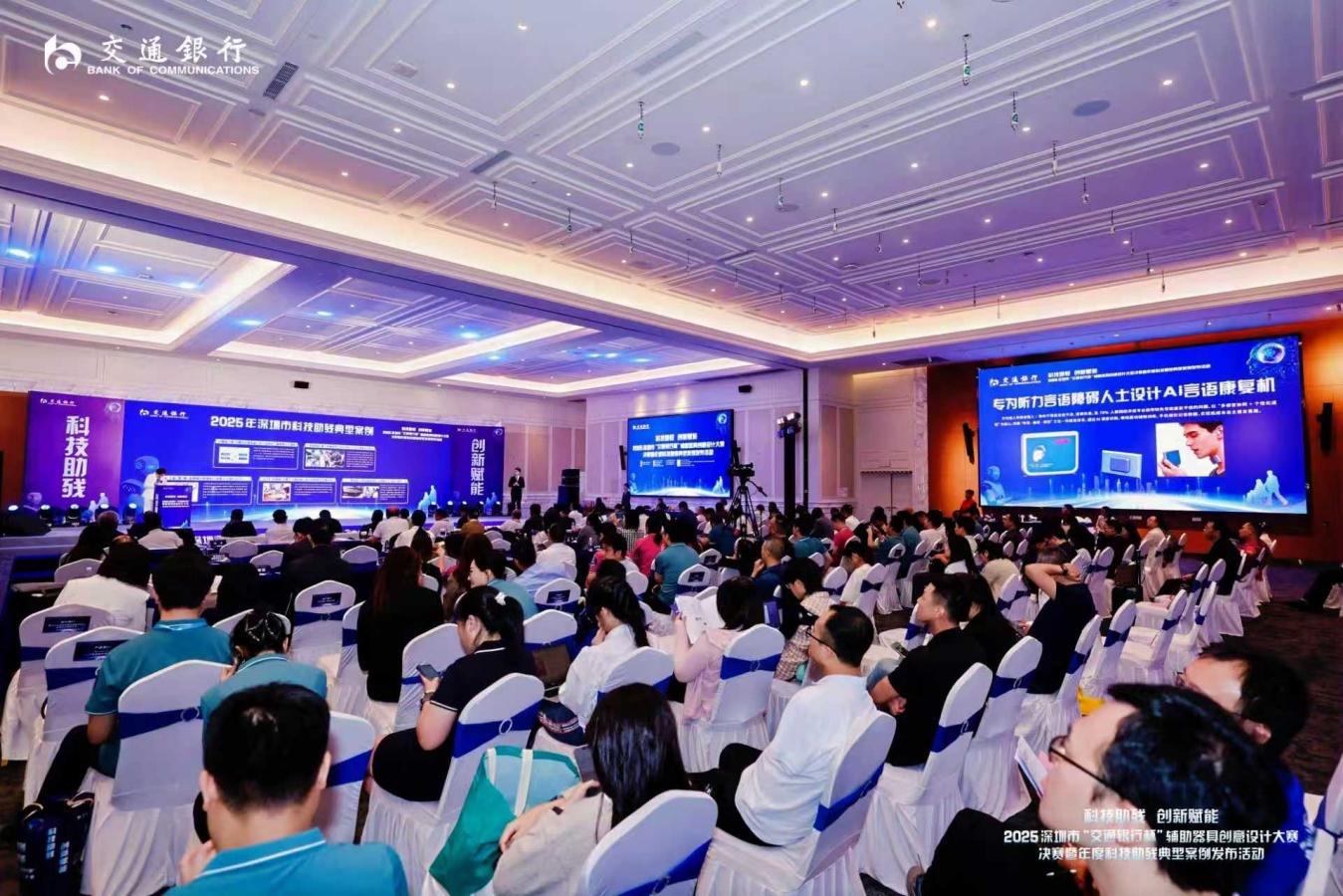 交通银行深圳分行作为大赛独家冠名单位,持续放大“普惠金融+科技助残”叠加效应,为获奖项目量身定制“交银助残科创包”,通过资金支持、投融资服务、孵化辅导与市场资源对接的全链条金融助力,交通银行切实推动科技助残成果从概念走向产品、从赛场走向市场,充分展现了国有金融机构在服务实体经济、践行社会责任中的国企担当。