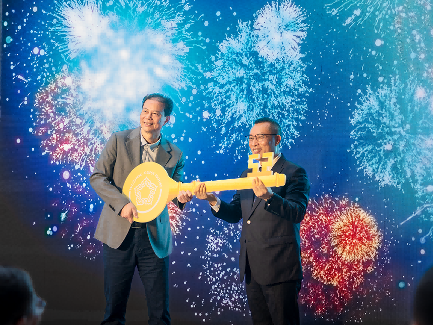 活动期间,深圳体育产业集团总经理林养植将一把寓意深远的金钥匙交付给五洲体育中心酒店总经理范树雄。这不仅是一次实物交接,更象征着双方的信任与重托,携手开启酒店运营的新篇章。