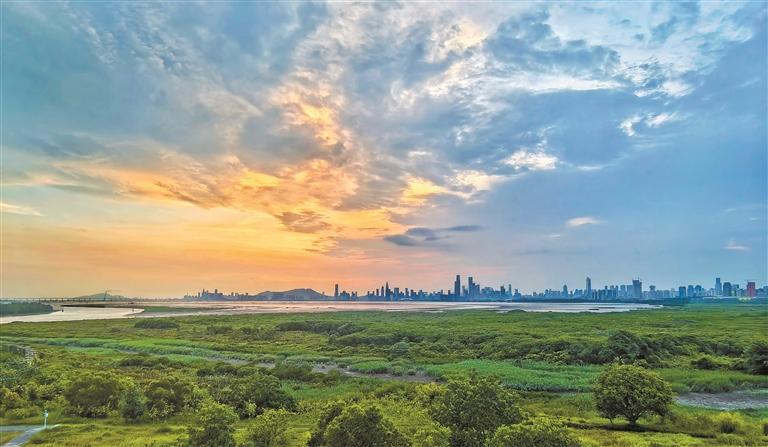 霞光中的福田红树林国际重要湿地。 胡柳柳 摄
