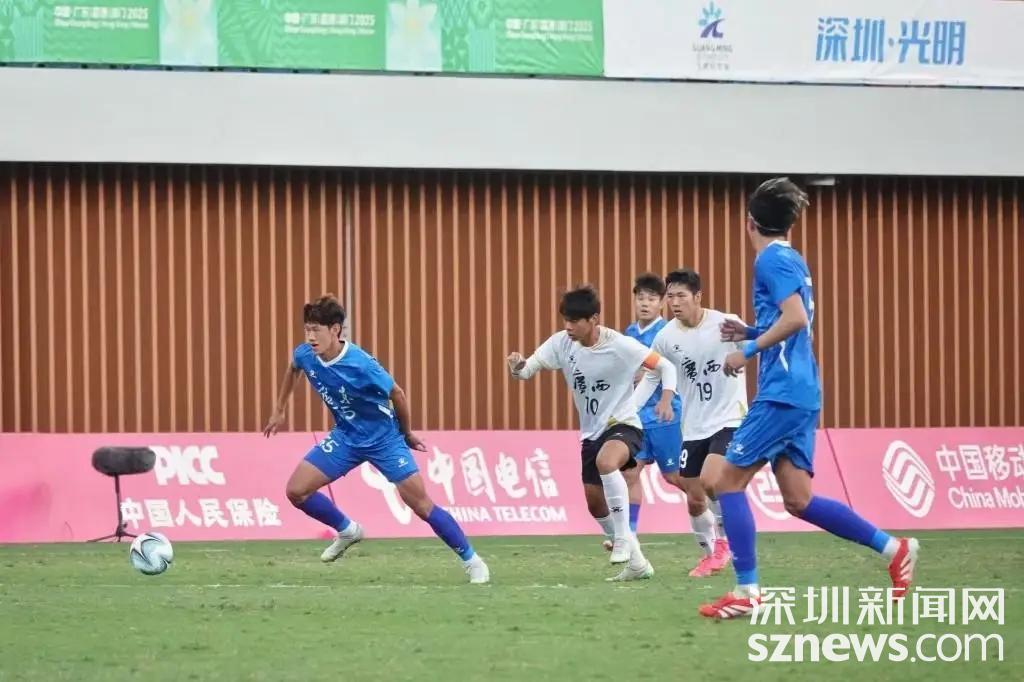 深圳新闻网2025年11月6日讯(记者 林斯涵)11月5日16时,第十五届全运会足球项目男子20岁以下组决赛阶段A组第3轮赛事在深圳市青少年足球训练基地热力开赛。东道主广东队凭借清晰的战术执行与稳定发挥,以3-0战胜广西队,前锋王梓洋独中两元成为全场焦点。此役过后,广东队顺利锁定小组出线名额,淘汰赛将对阵云南队。