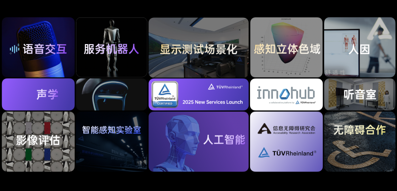 在声学板块,TÜV莱茵详细介绍了涵盖声学实验室、多阶段的“语声聚莱”服务技术开发路线、多模态感知与场景融合及全消室等核心测试设备的服务能力重点聚焦声学技术研发与实际应用场景的深度融合。该服务将依托基础声学的参数测量,关注声音多模态物理量检测,深入研究人因听觉感受、人居环境与生态声学适配关系,致力于实现人、科技与环境的声学和谐平衡。