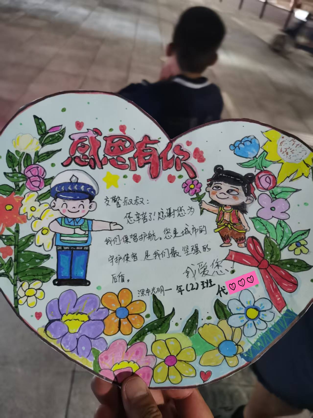 孩子父亲笑着解释,学校布置的感恩贺卡任务,让孩子始终惦记着要亲手送给守护校园周边的交警叔叔。这份突如其来的温暖,让常年坚守一线的铁骑硬汉心中满是动容,小心翼翼将画作珍藏。