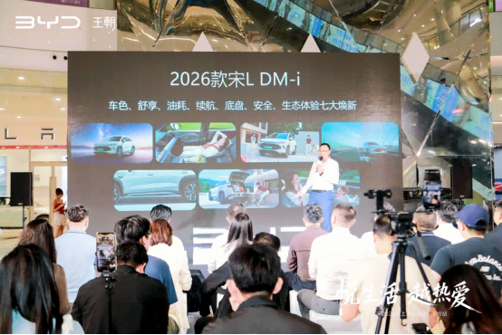 2026款宋L DM-i纯电续航高达200km,满油满电综合续航高达1630km,百公里亏电油耗低至3.4升。全系标配云辇-C智能阻尼车身控制系统、TBC高速爆胎稳行系统、天神之眼C驾驶辅助系统,新增一体式冷暖冰箱、座椅按摩,新增两款全新车色,换装电子怀挡,打造中级SUV豪华标杆。