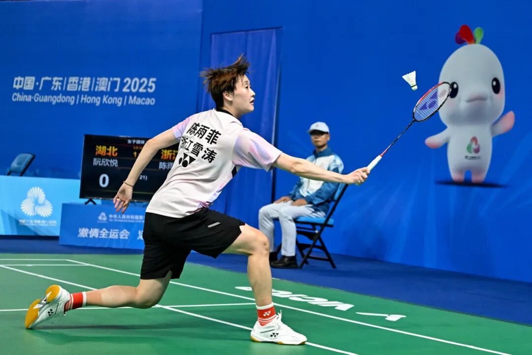 ▲11月9日,第十五届全国运动会羽毛球女子团体小组赛E组比赛在深圳市体育中心体育馆举行。图源:IC photo