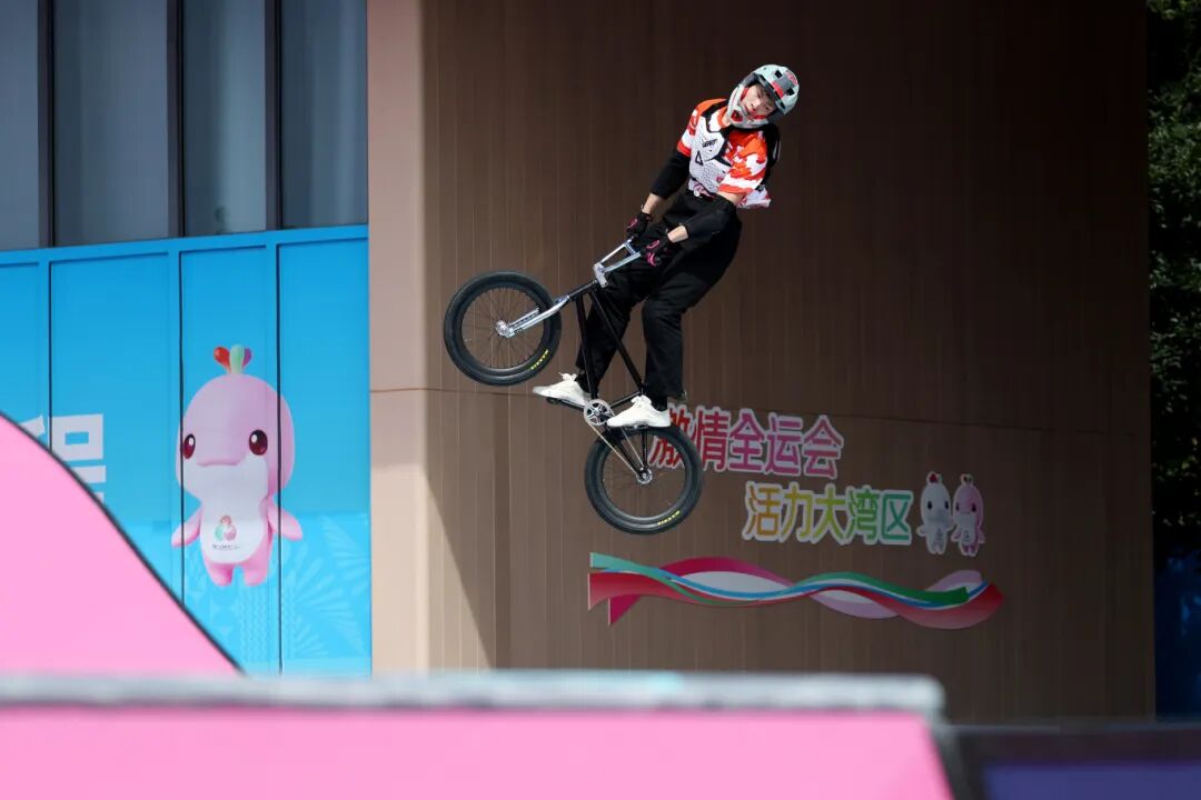 ▲2025年10月25日,第十五届全国运动会自由式小轮车女子公园赛决赛在深圳光明区虹桥公园举行。图源:IC photo