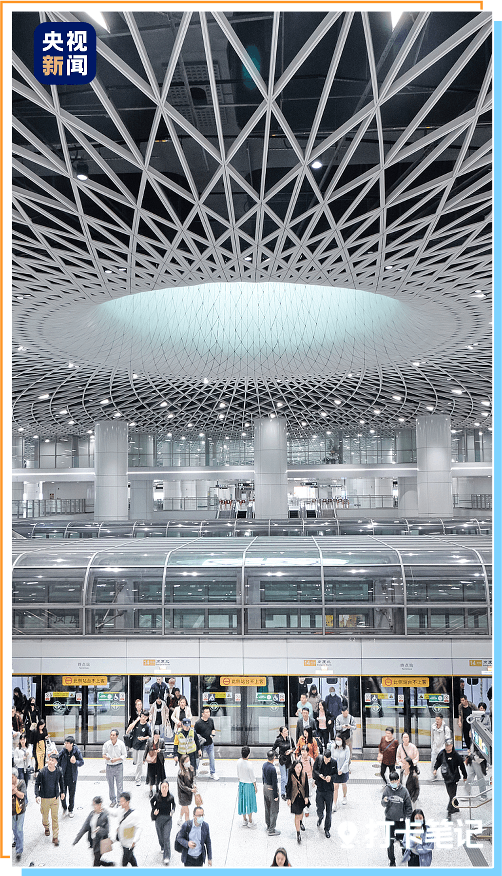 △深圳岗厦北地铁站,无柱大跨钢结构的中庭被誉为“深圳之眼”。