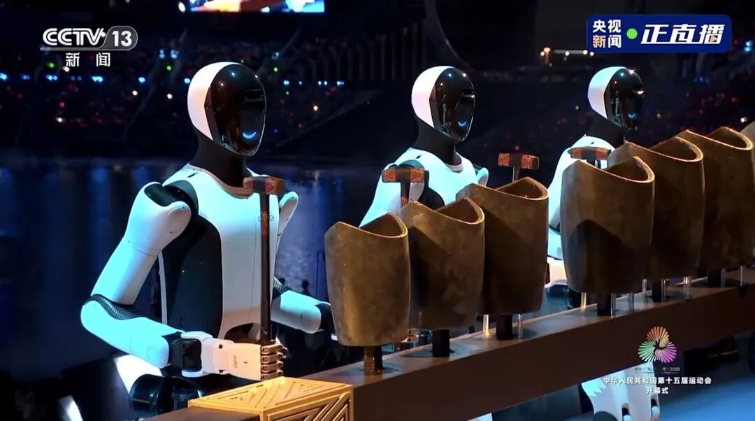 智能机器人敲响春秋战国时期的青铜句鑃,一曲《彩云追月》实现跨越两千多年的梦幻对话;岭南文化与 AI、AR 技术碰撞出别样火花,南拳武术刚劲利落,巨型鳌鱼灵动起舞,醒狮腾跃、英歌舞激昂,AR 龙舟 “划入” 赛场,让传统民俗以 “赛博” 姿态惊艳亮相,既展现了中华文化的深厚底蕴,又彰显了科技创新的无限可能。